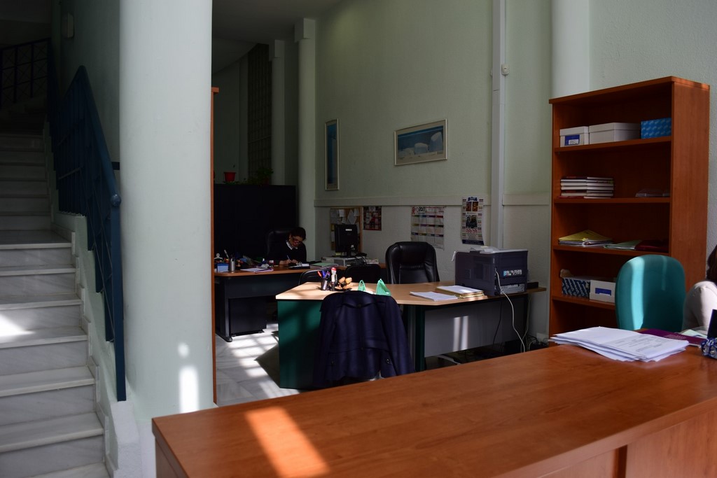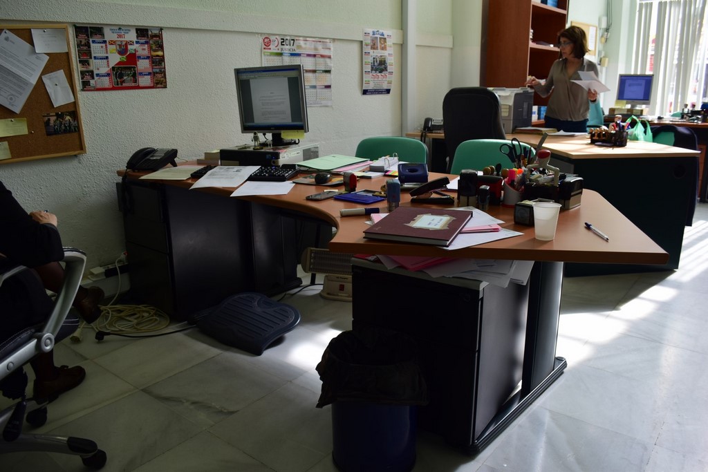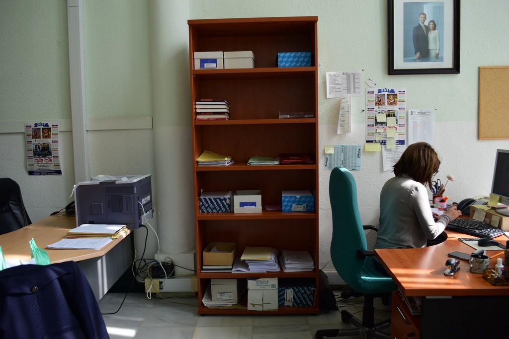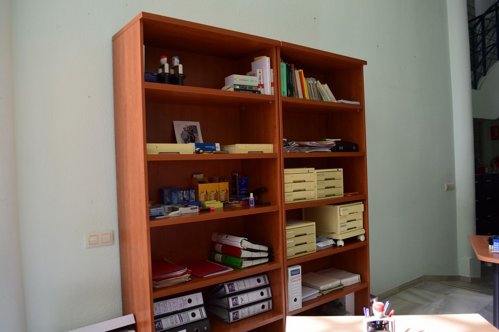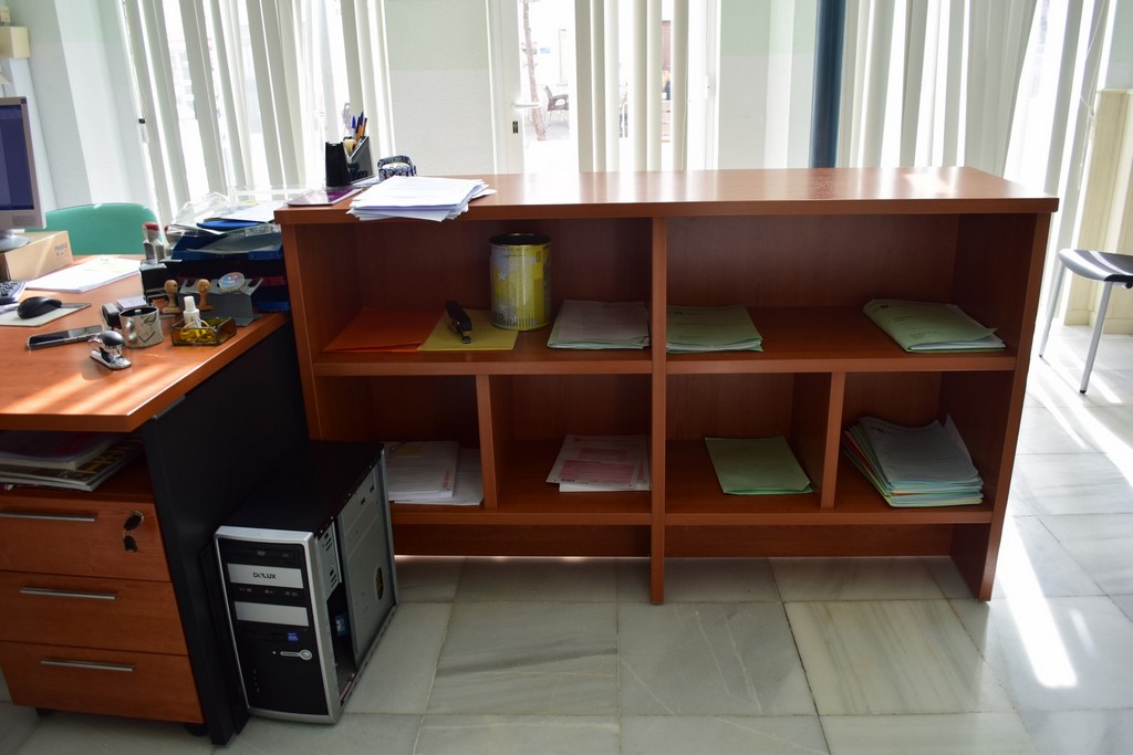 Escritorio con tres armarios al fondo
