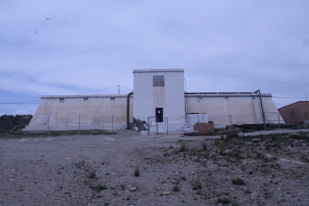 Depósito de gran capacidad y de planta rectangular. Se encuentra en buen estado y tiene algunas pequeñas construcciones adosadas al edificio principal.