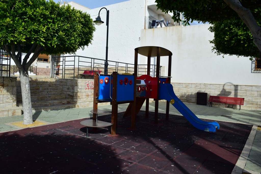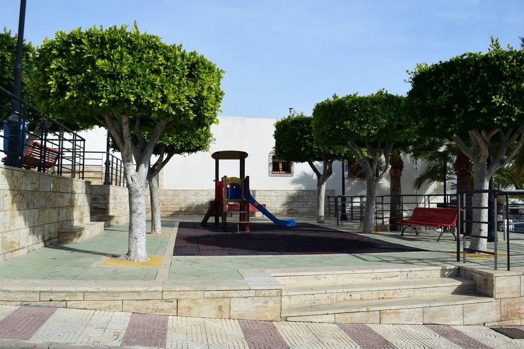Parque pavimentado de tres alturas con vegetación, mobiliario urbano y alumbrado público. Se encuentra en muy buenas condiciones. También dispone de zona de juego infantil.
